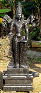 Hindu Lord Vishnu Sculpture Image in Black Marble
